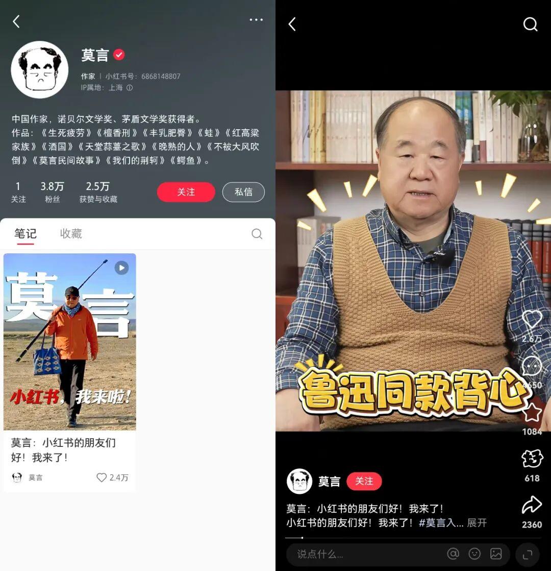“小红书,我来了。”11月11日上午,著名作家莫言通过小红书账号发布首条视频,宣布正式入驻平台。