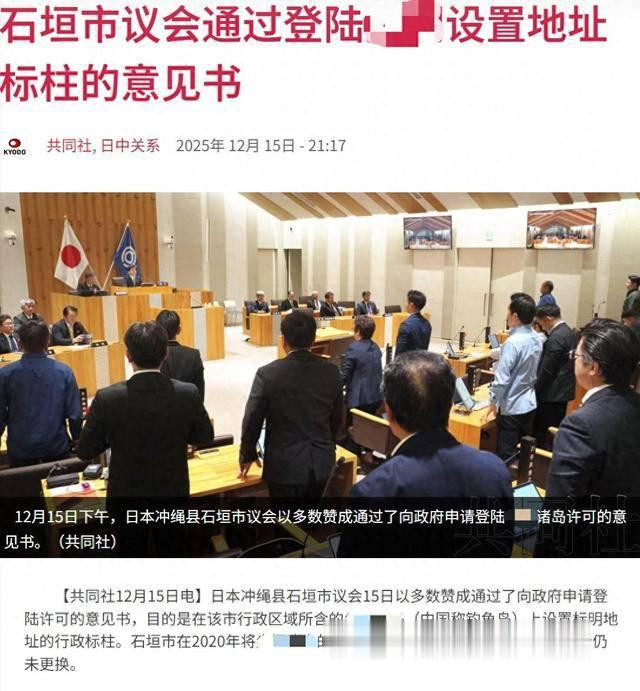 但同日曝光的另一则消息,戳穿了日本的虚伪面具:日本政府正式批准石垣市议会提交的“登陆钓鱼岛设置行政地标”提议。这一操作绝非地方自发行为,而是日本政府精心策划的政治碰瓷——早在12月初,日本民用船只就曾试图强闯钓鱼岛,被中方海警当场拦截;如今借地方提案之名行主权挑衅之实,本质上是想制造“中方阻碍日方行政行为”的假象,进而在国际上倒打一耙,博取同情并倒逼美国下场支持。
