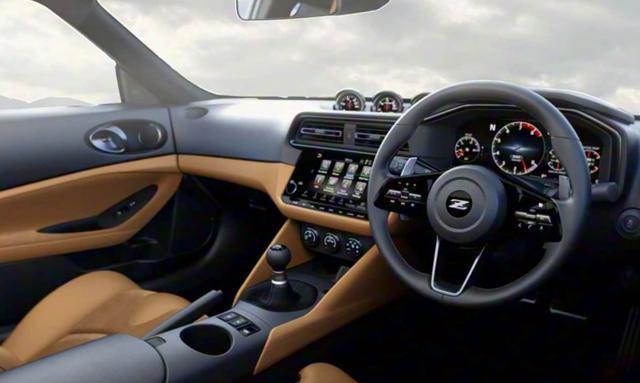 内饰延续复古与现代融合的风格,核心布局基本不变,新增浅棕色皮革材质选项,提升豪华质感。仪表盘保留经典的三圆模拟仪表,搭配12.3英寸全数字TFT显示屏,可自定义显示动力输出、扭矩分配等关键数据,中控台配备8.0英寸触控屏,支持多媒体交互与手机互联,空调控制开关布局在挡杆附近,操作便捷。座椅采用GT-R开发经验优化设计,大面积麂皮材质增强包裹性,有效抑制激烈过弯时的车身晃动。
