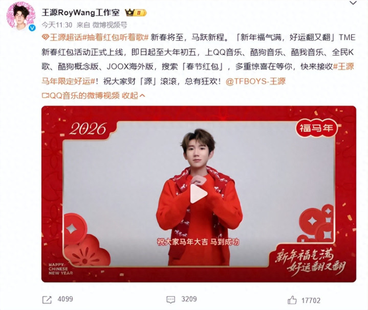 明星社交与情感认同是腾讯音乐尤其是QQ音乐过去一年重点打造的新玩法。王源作为Z世代领军音乐人,在年轻群体中拥有极大影响力,并成为这次腾讯音乐春节活动的核心“陪玩”嘉宾。