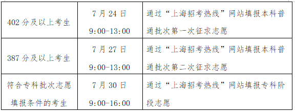 答:7月23日,参加本科普通批次招生的考生可通过市教育考试院“上海招考热线”网站(www.shmeea.edu.cn)查询本科普通批次录取结果。未能被录取的考生仍可以通过填报本科普通批次两次征求志愿和专科阶段志愿来争取录取机会,相关填报安排如下:
