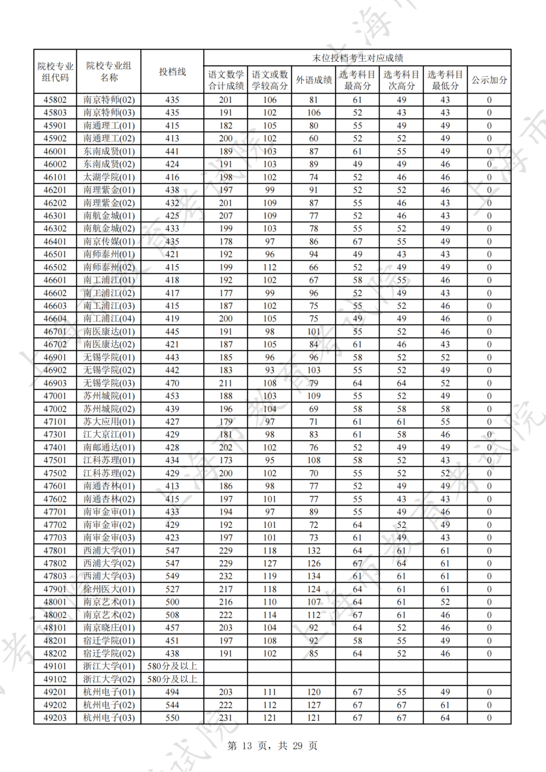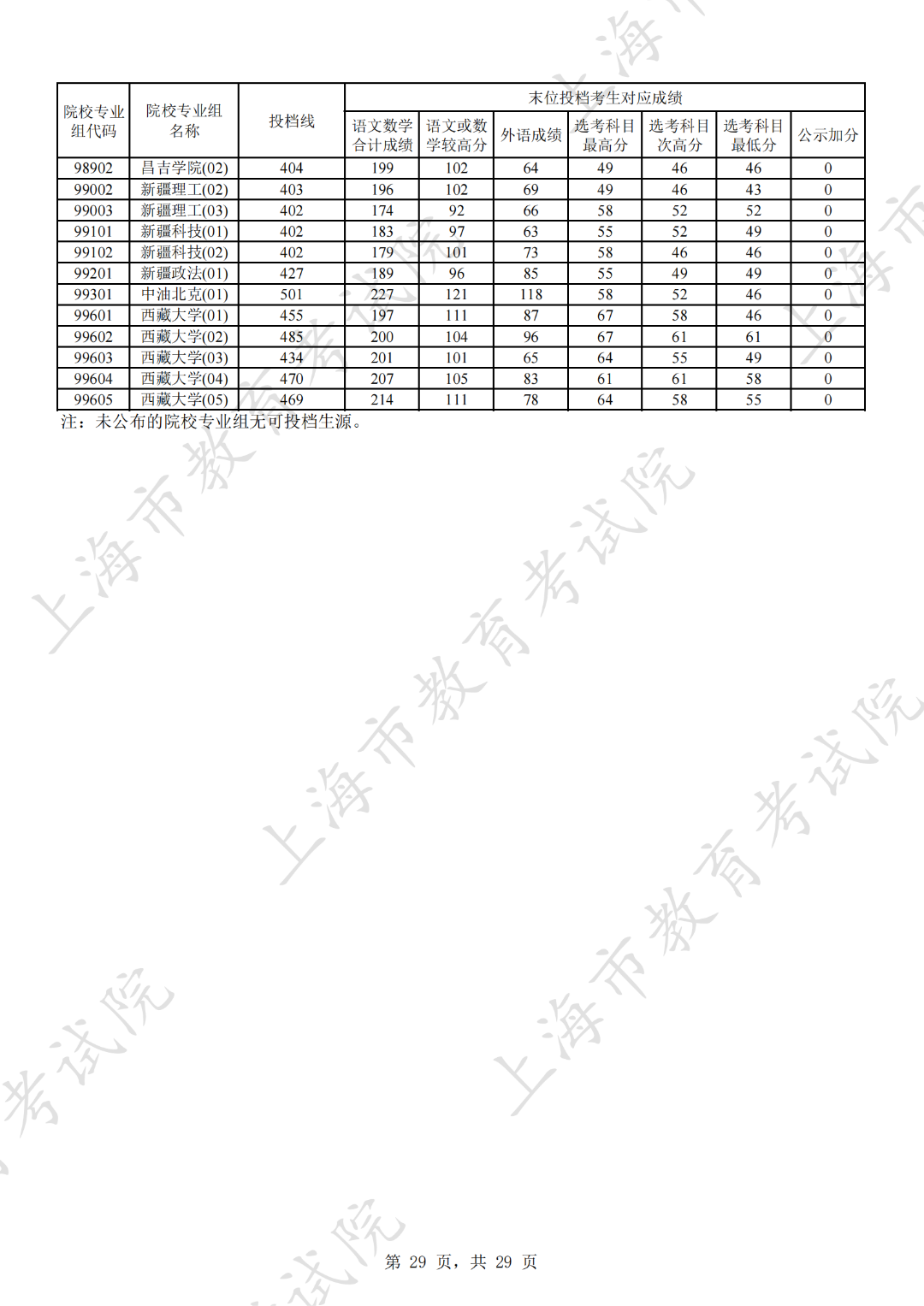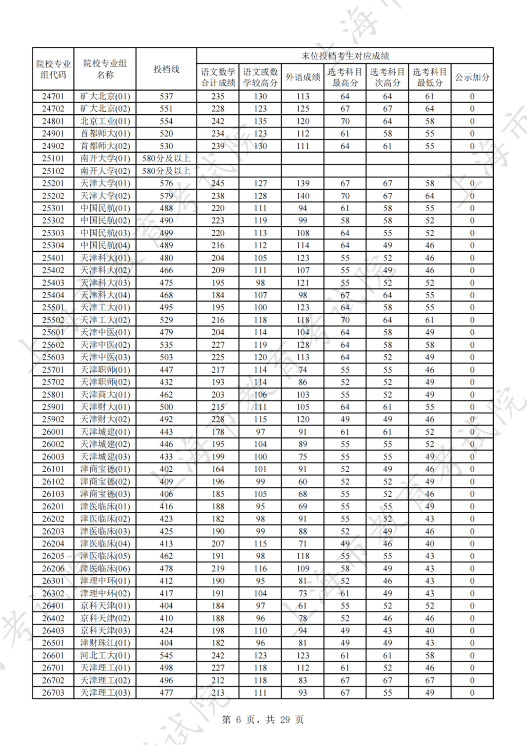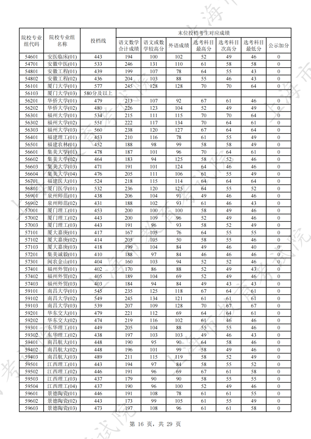 为贯彻落实教育部关于做好普通高考招生录取工作的有关要求,积极营造尊重考生兴趣选择的良好导向,避免发生炒作高分段考生投档情况等现象,投档分数线在580分及以上的院校专业组不公布具体分数。参与本科普通批次投档且高考成绩在580分及以上考生的投档信息将由市教育考试院会同相关中学逐一告知考生。