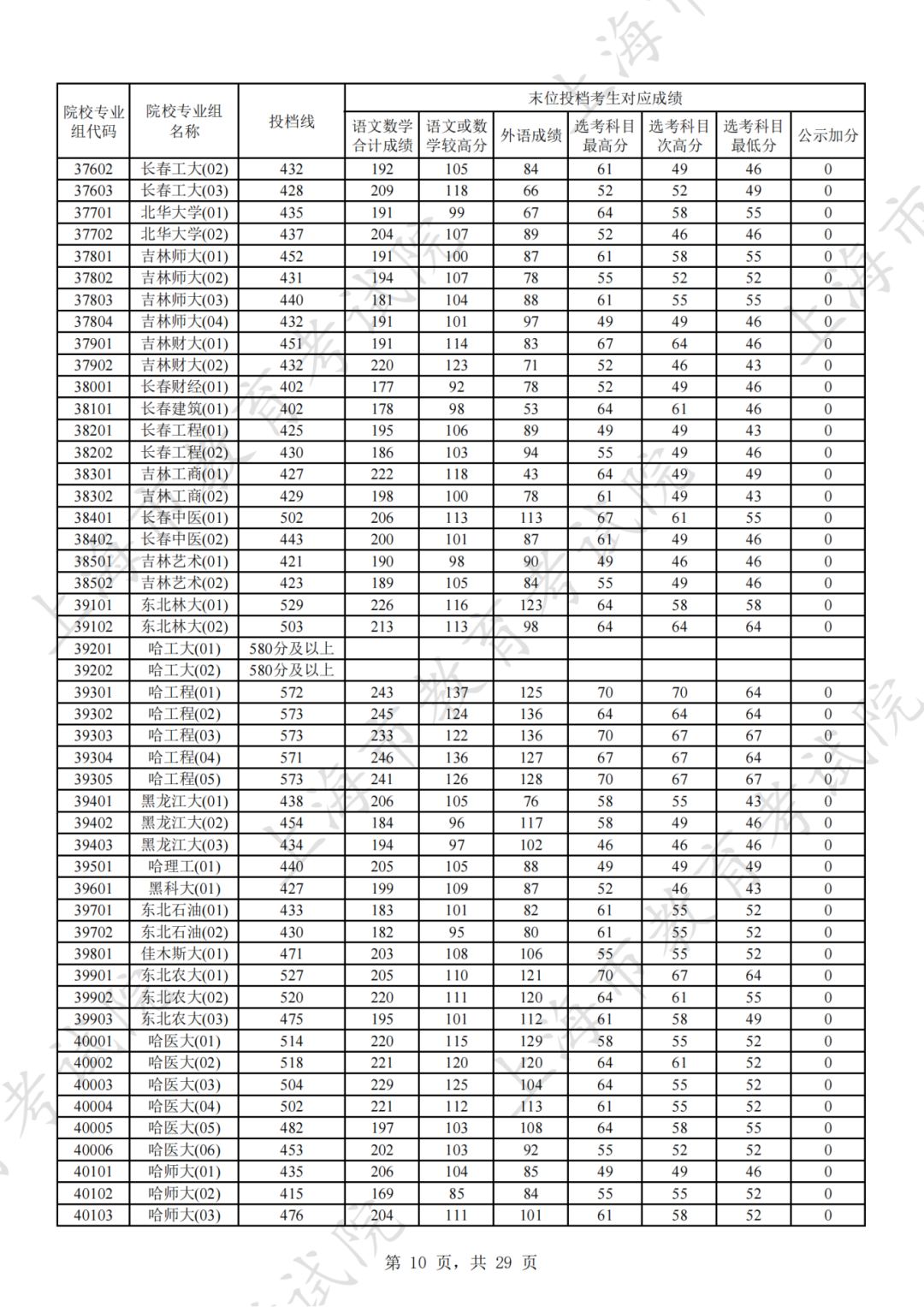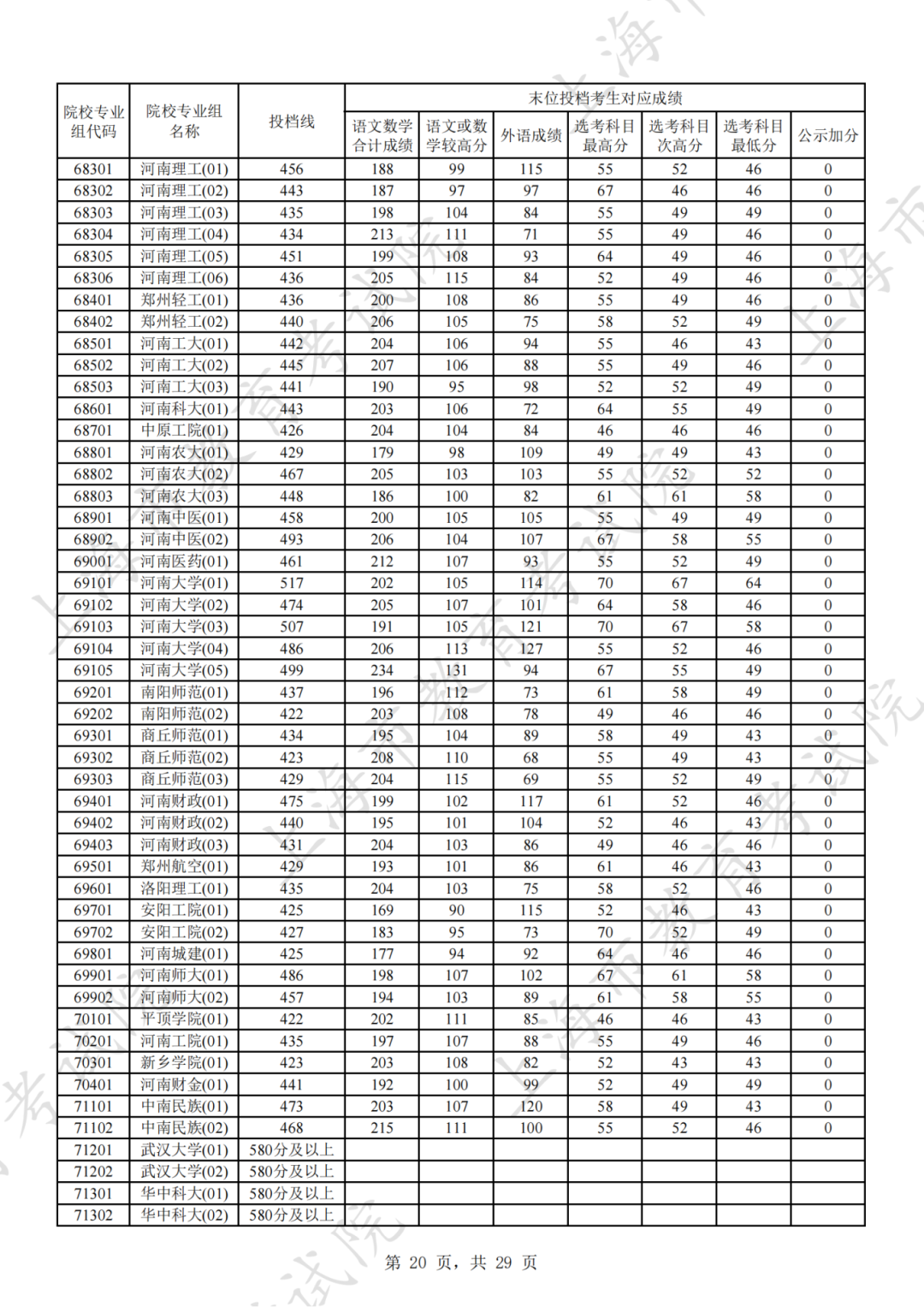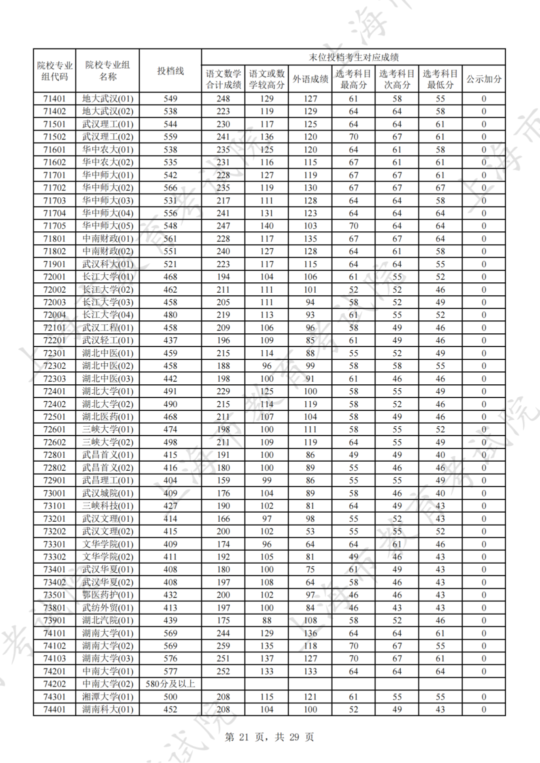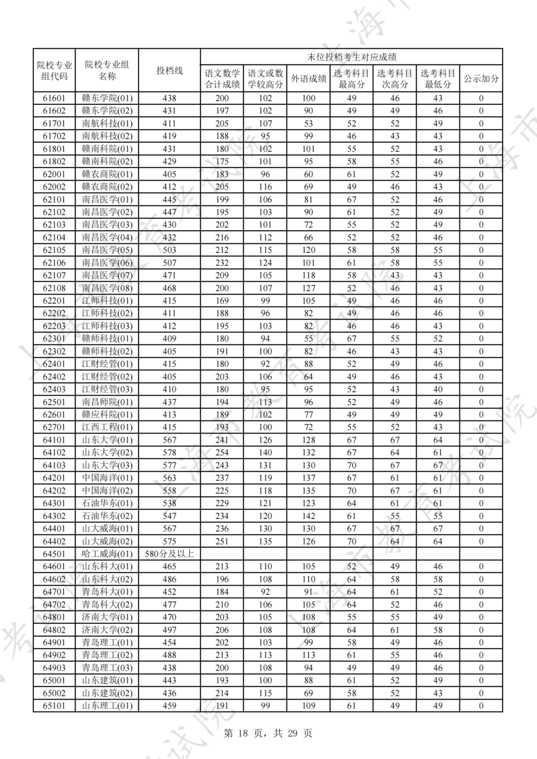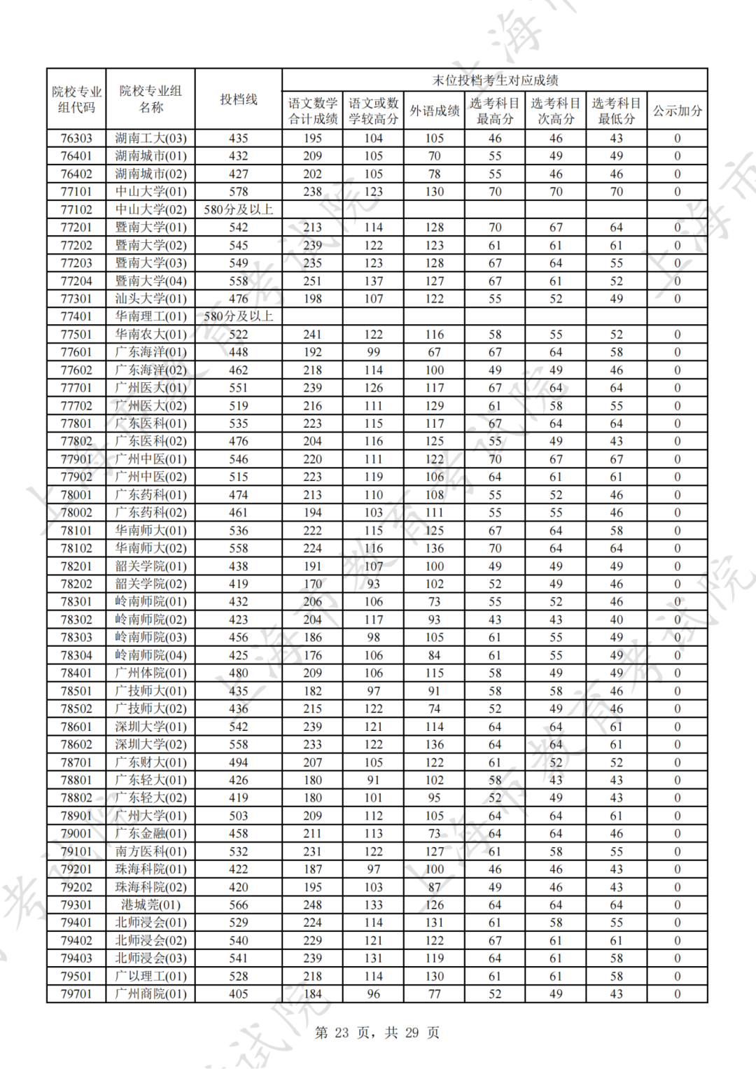 为贯彻落实教育部关于做好普通高考招生录取工作的有关要求,积极营造尊重考生兴趣选择的良好导向,避免发生炒作高分段考生投档情况等现象,投档分数线在580分及以上的院校专业组不公布具体分数。参与本科普通批次投档且高考成绩在580分及以上考生的投档信息将由市教育考试院会同相关中学逐一告知考生。