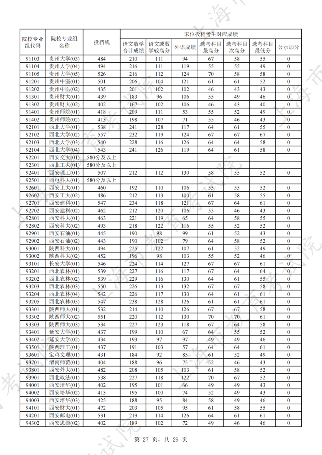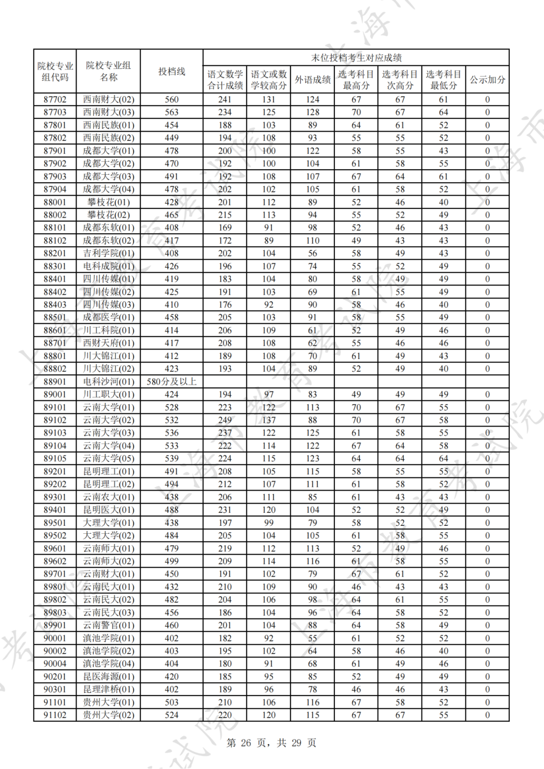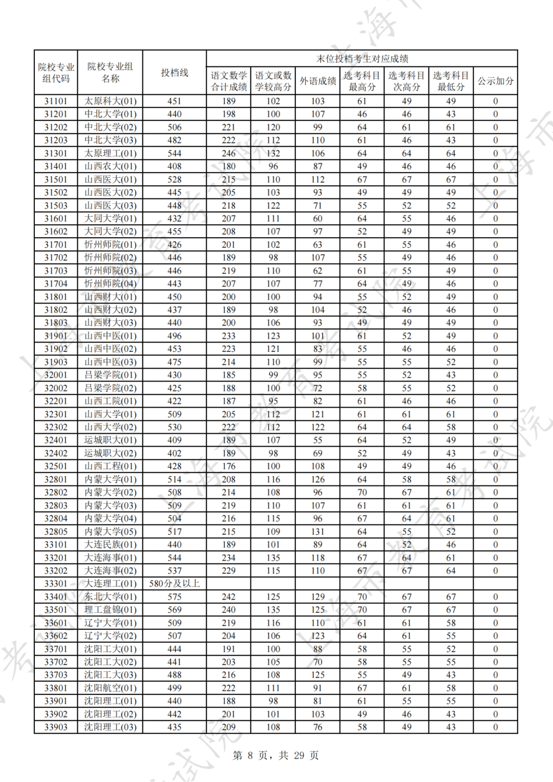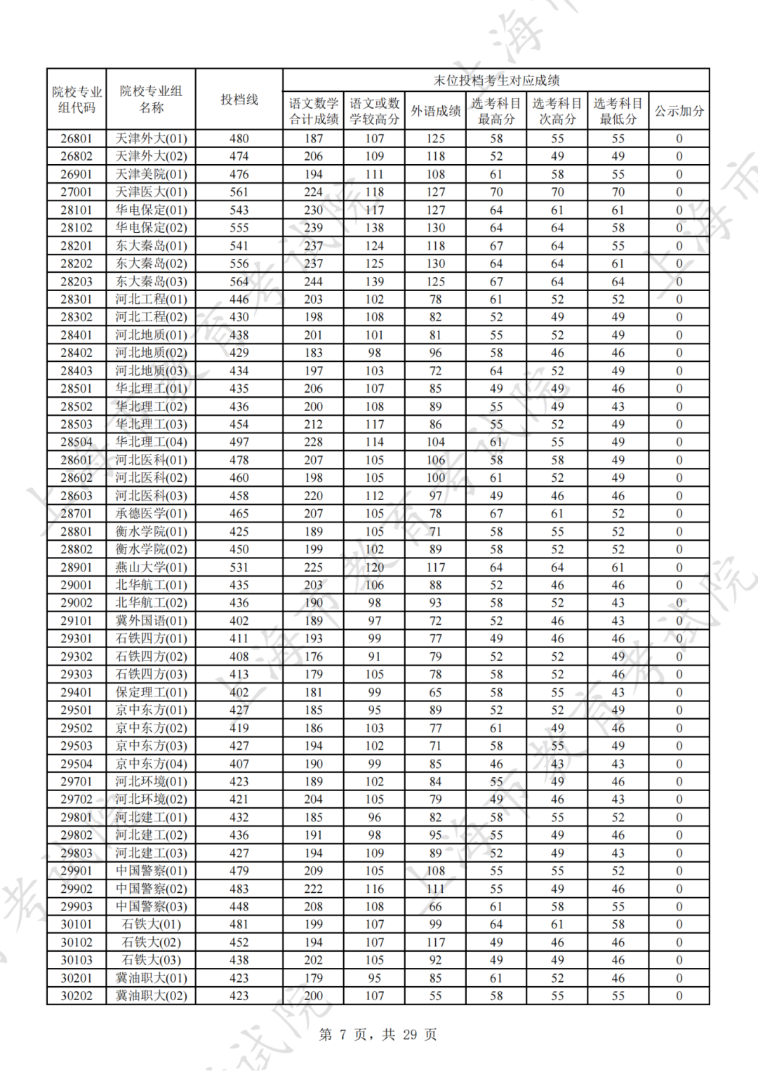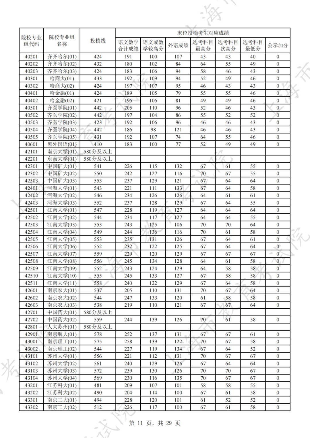 为贯彻落实教育部关于做好普通高考招生录取工作的有关要求,积极营造尊重考生兴趣选择的良好导向,避免发生炒作高分段考生投档情况等现象,投档分数线在580分及以上的院校专业组不公布具体分数。参与本科普通批次投档且高考成绩在580分及以上考生的投档信息将由市教育考试院会同相关中学逐一告知考生。
