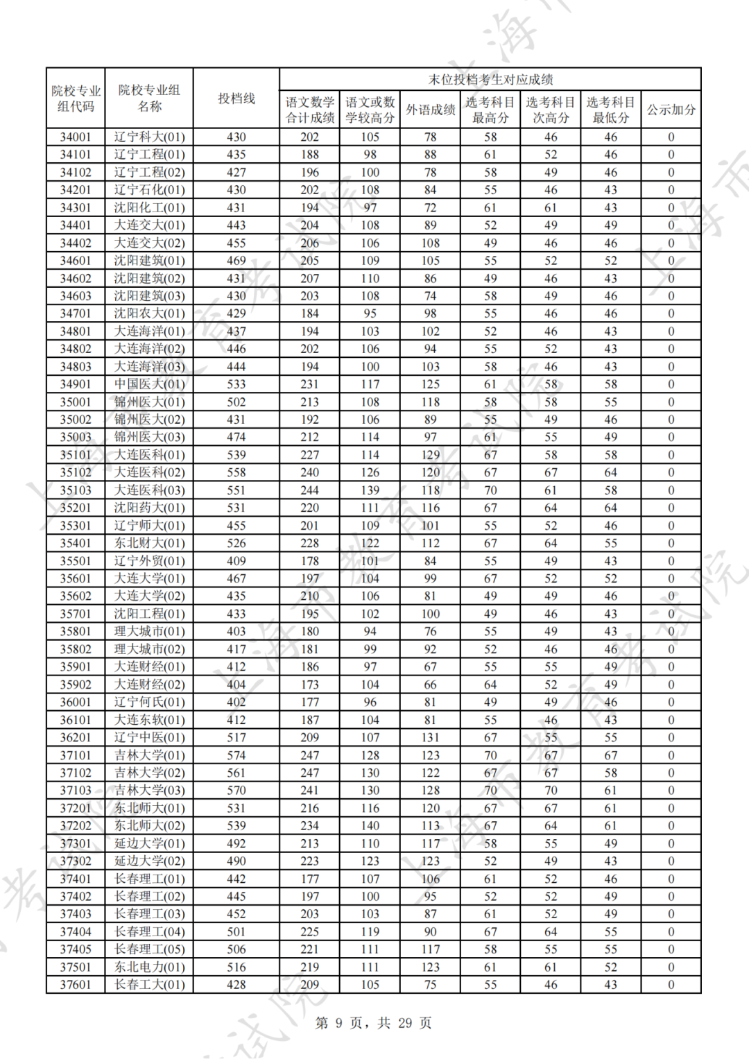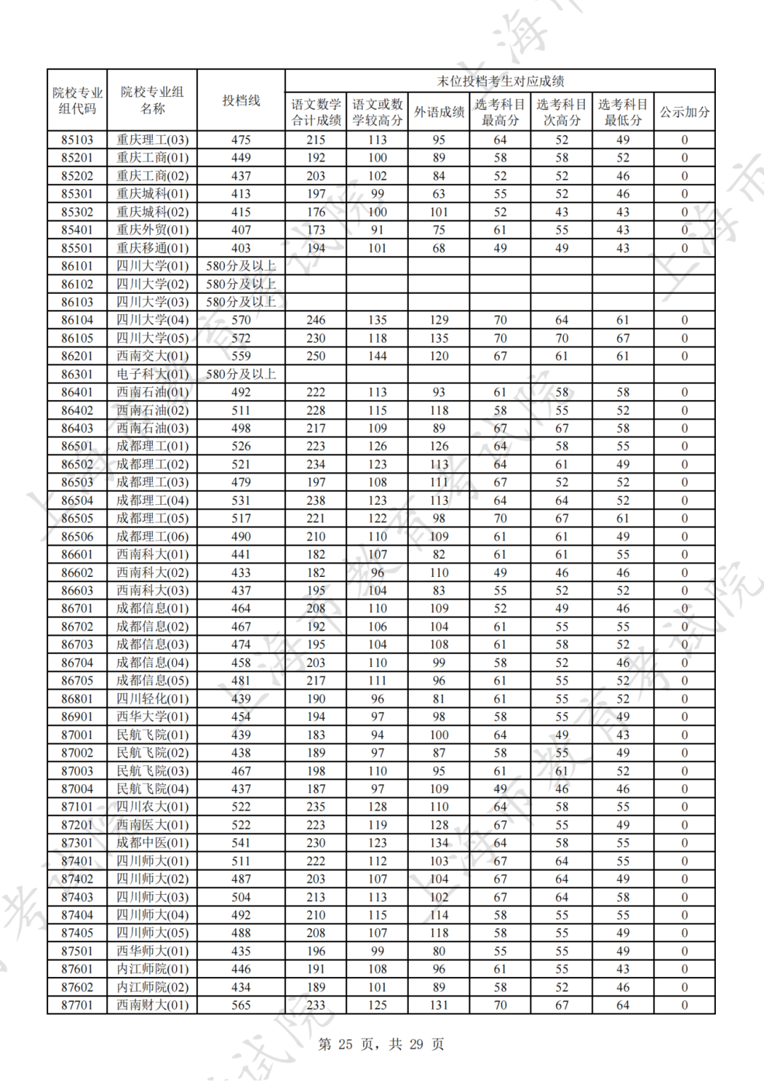 2025年本科普通批次平行志愿院校专业组投档分数线